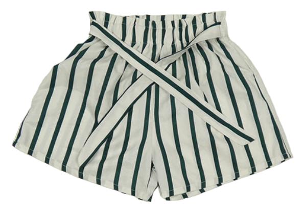 Bielo-tmavozelené pruhované sukňové kraťasy s opaskom Shein