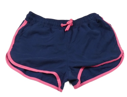 Tmavomodré plážové kraťasy s růžovým lemem
