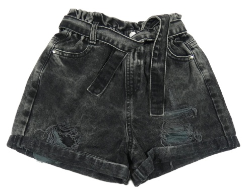 Sivo-čierne rifľové paper bag kraťasy s opaskom a dierami F&F
