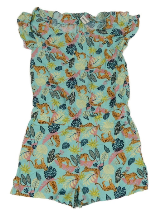 Svetlomodrý ľahký kraťasový overal s listami a leopardmi Yigga