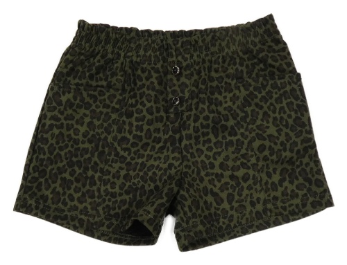 Kaki-čierno-hnedé kraťasy s leopardím vzorom