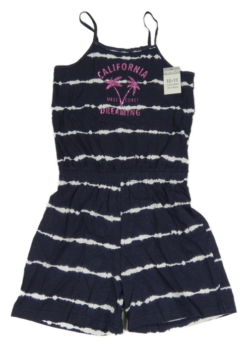 Nové - Tmavomodro-biely batikovaný kraťasový overal s palmami Pep&Co