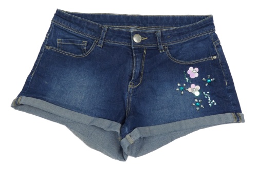 Tmavomodré rifľové kraťasy s kvítky z kamínků C&A