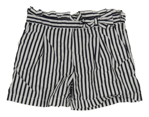 Čierno-biele pruhované plátenné kraťasy s mašlou