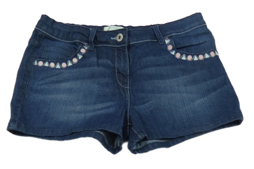 Tmavomodré rifľové kraťasy s výšivkou Alive