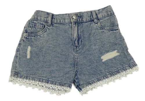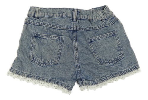 Modré plesňové rifľové kraťasy s vyšúchaním a čipkovymi kvety F&F
