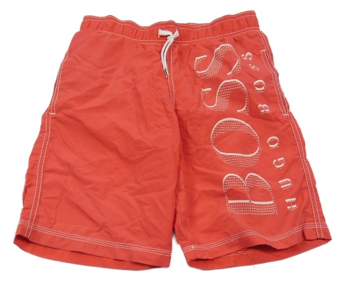 Malinové plážové kraťasy s logom Hugo Boss