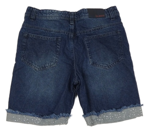 Tmavomodré rifľové kraťasy s vyšúchaním a kamienkami US Jeans