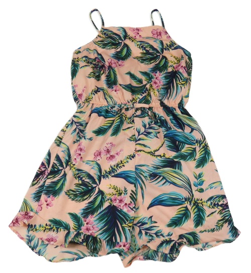 Svetloružová -tmavozelený kvetovaný ľahký kraťasový overal Primark