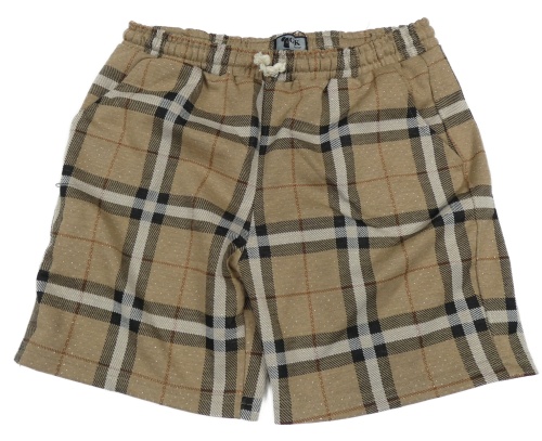 Hnedo-čierno-sivé kockované trblietavé kraťasy