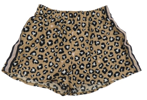 Hnedo-čierno-biele vzorované kraťasy so srdiečkami a pruhmi