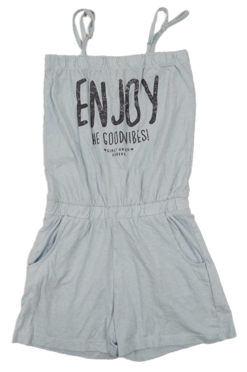 Svetlomodrý teplákový kraťasový overal s nápisom Page one young