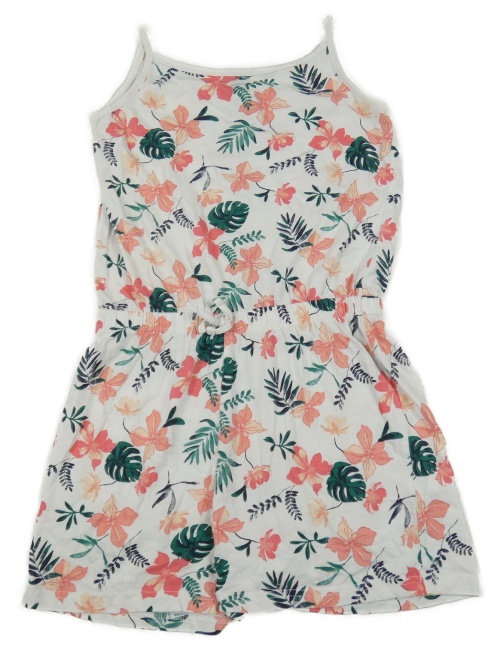 Biely kvetovaný bavlnený kraťasový overal s listami Y.F.K.