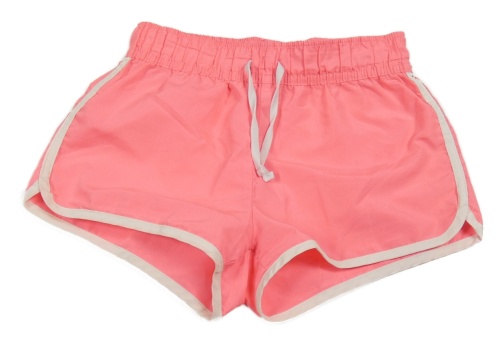 Neónově ružové športové kraťasy s bielymi prúžkami