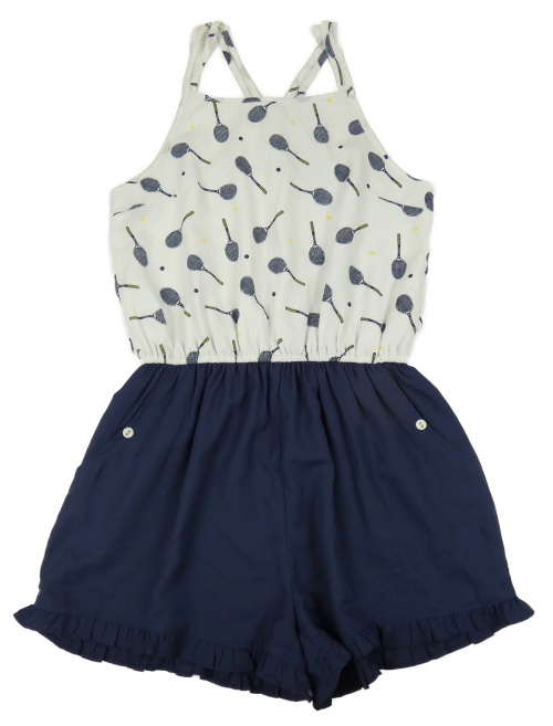 Bielo-tmavomodrý kraťasový overal s tenisovými raketami M&S