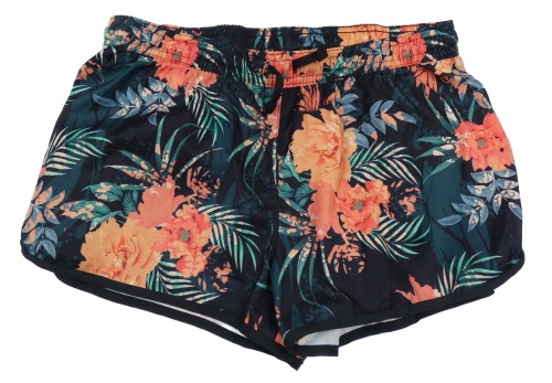Tmavomodré šušťákové kraťasy s kvetinami Decathlon