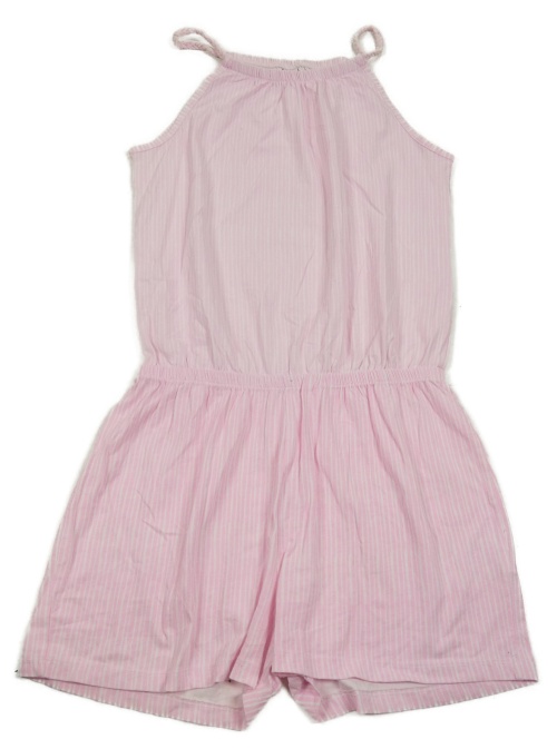 Svetloružová -biely pruhovaný bavlnený kraťasový overal Yigga