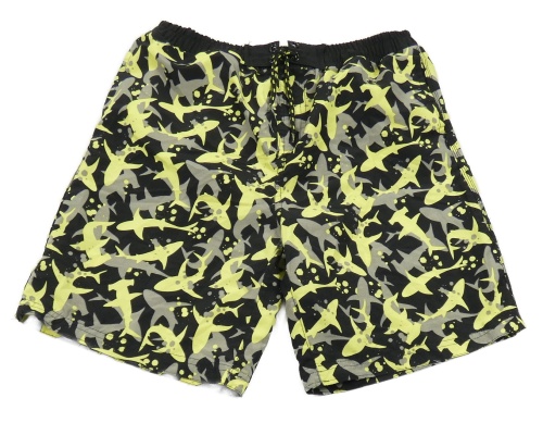 Čierno-sivo-neónové žlté plážové kraťasy so žralokmi Y.F.K.