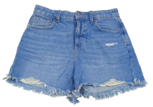 Modré roztřepěné rifľové high rise kraťasy s vyšúchaním Primark
