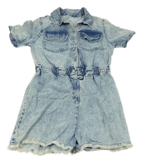 Svetlomodrý rifľový kraťasový overal s golierikom Dunnes