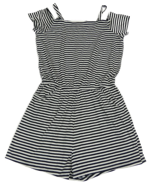 Čierno-biely pruhovaný bavlnený kraťasový overal C&A