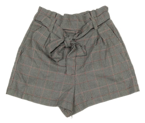 Čierno-bielo-červené kockované kraťasy s opaskom Bershka