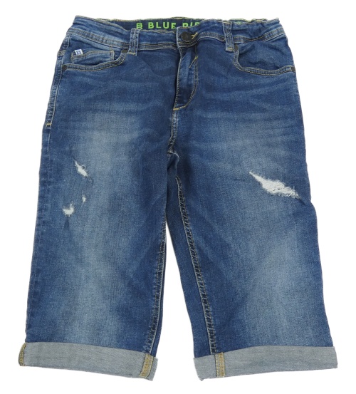 Tmavomodré teplákové slim rifľové kraťasy s vyšúchaním