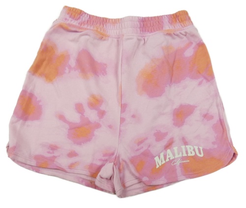 Ružovo-oranžové batikované teplákové kraťasy s nápisom H&M