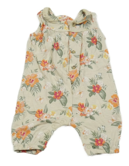 Béžový bavlnený kraťasový overal s kvetmi Dopodopo