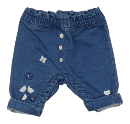 • Modré baggy teplákové kalhoty riflového vzhledu s motýlikmi a květinami un. Prenatal