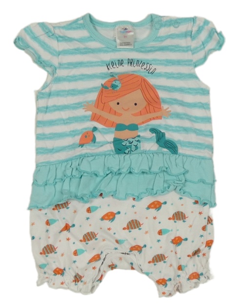 Pruhovano-biely bavlnený kraťasový overal s mořskou pannou Topomini