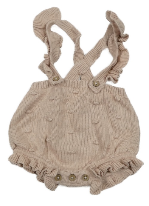 Pudrové pletené kraťasy s 3D bodky a trakami s volánikmi George