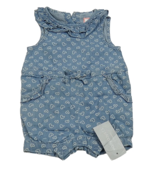 • Nové - modrý ľahký rifľový kraťasový overal so srdiečkami a mašlou a volánikmi early days