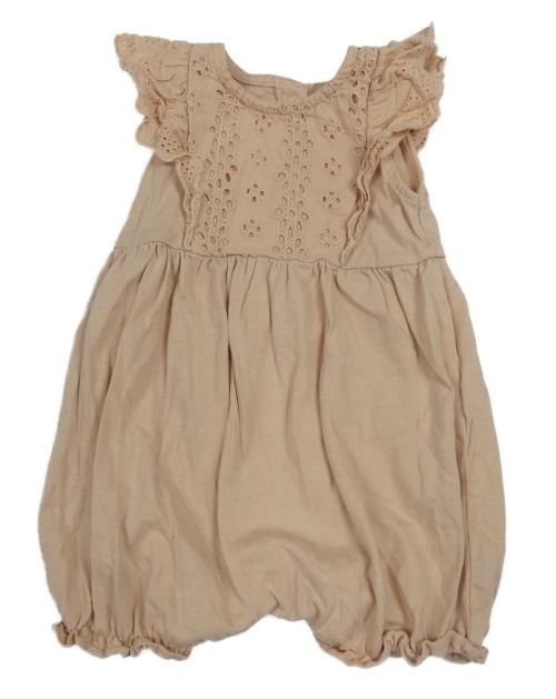 Pudrový plátenný kraťasový overal s madeirou a volánikmi Next