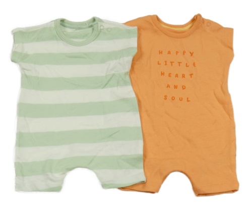 • 2x - Kraťasový overal - Světlezeleno/bílý pruhovaný, oranžový s nápismi George