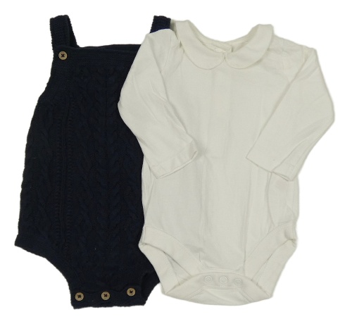 2Set - Tmavomodré vzorované pletené na traké kraťasy bílé body s bílé body s límečkem Tu