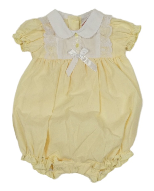 Žlto-biely kraťasový overal s golierikom a čipkou