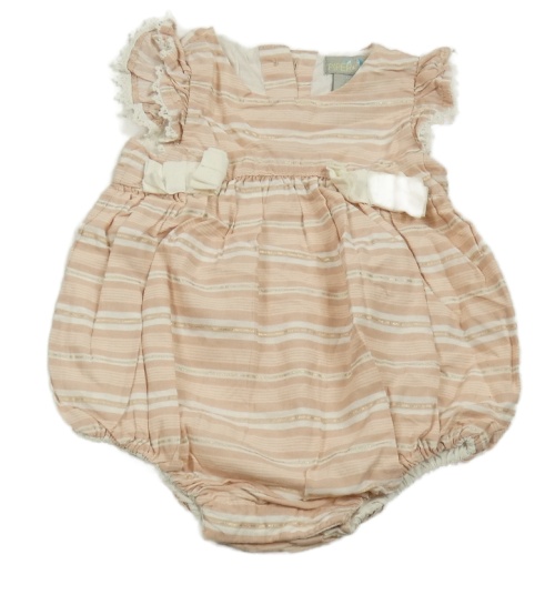 Starorůžovo-bielo-zlatý pruhovaný podšitý kraťasový overal s mašľami