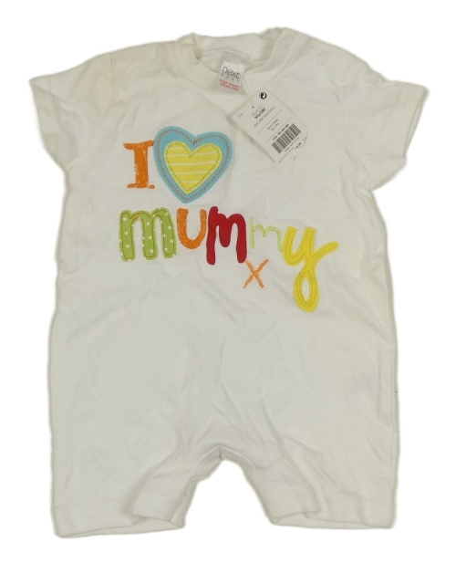 • Nové - Biely bavlnený kraťasový overal s nápisom so srdcem Next