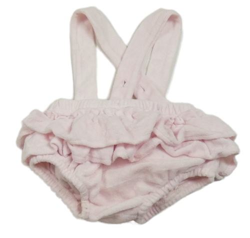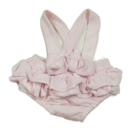 Svetloružové zamatové kraťasy s volánikmi a trakami