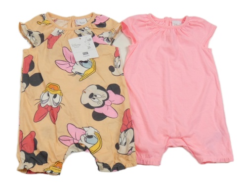 Nové - 2x - Kraťasový overal - Meruňkový s Minnie a Daisy, neonově růžový Disney