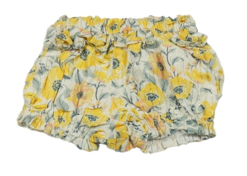 Bielo-žlto-zelené kvetované trblietavé kraťasy