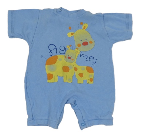 Modrý kraťasový overal so žirafami