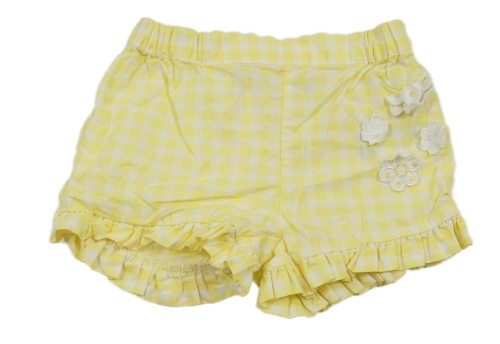 Žlto-biele kockované plátenné kraťasy s kvetmi