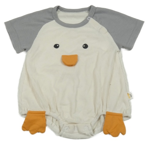 • Smetanovo-sivý rebrovaný kraťasový overal s tučňáčkem