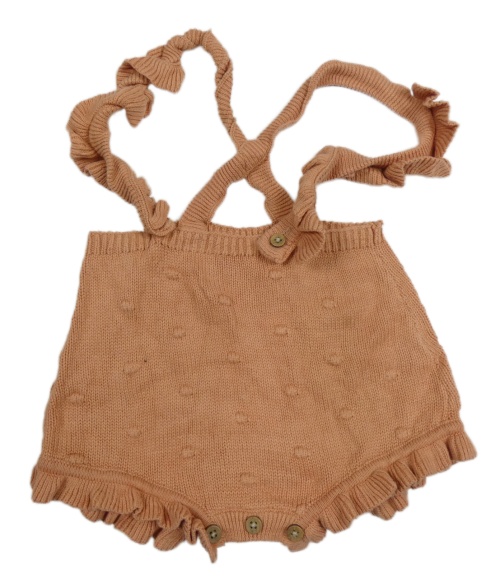 Skořicové pletené kraťasy s 3D bodky a trakami s volánikmi George