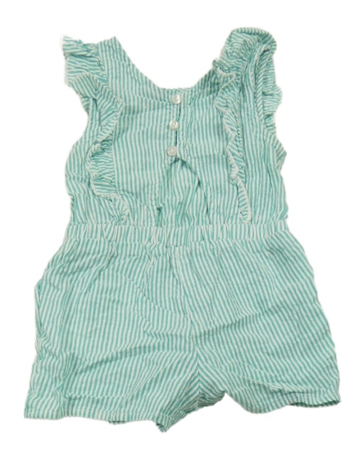 Zeleno-biely pruhovaný kraťasový overal s volánikmi Kiabi