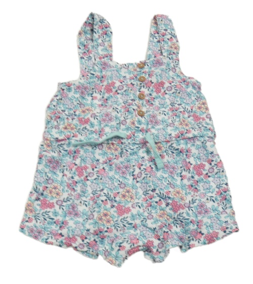 Bielo-světlezeleno-ružový kvetovaný kraťasový overal Obaibi