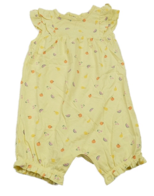 Žltý kraťasový overal s ovociem a melónmi a volánikmi Tu
