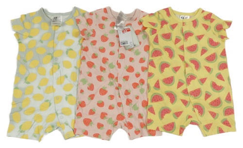 Nové - 3x - Svetloružový + žltý + svetlomodrý kraťasový overal s ovociem H&M